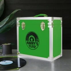 Personalised 12 Inch Record Storage Box – Green Leather Effect With Metal Trim – Half Record Sticker