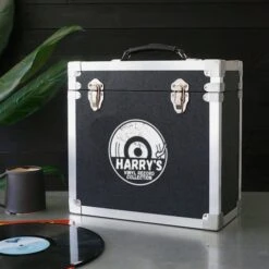 Personalised 12 Inch Record Storage Box – Black Leather Effect With Metal Trim – Record Sticker