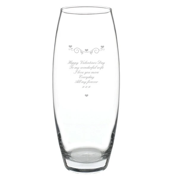 Personalise this elegant Hearts & Swirls Bullet Vase with up to 6 lines of 20 characters each.
