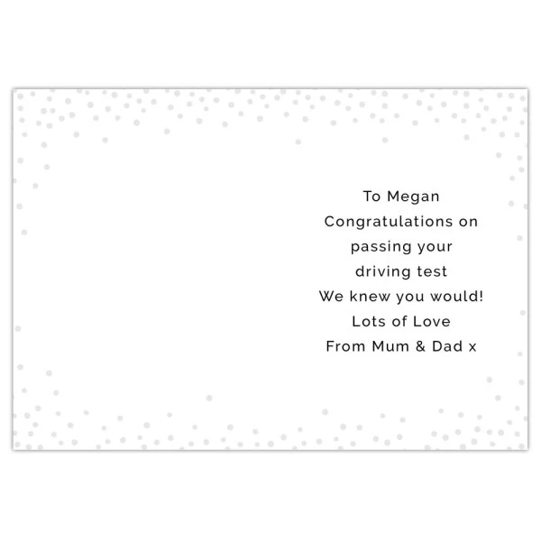 This Personalised “You Passed” your driving test card, is a great way to celebrate their achievement.