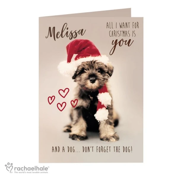 This adorable Personalised Rachael Hale “All I Want For Christmas” Dog Card is the perfect card for any dog lover.