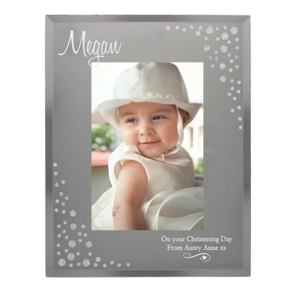 This stylish Personalised Swirls & Hearts Diamante 4×6 Glass Photo Frame features a gentle mirrored effect and results in a beautiful way to display a photograph.