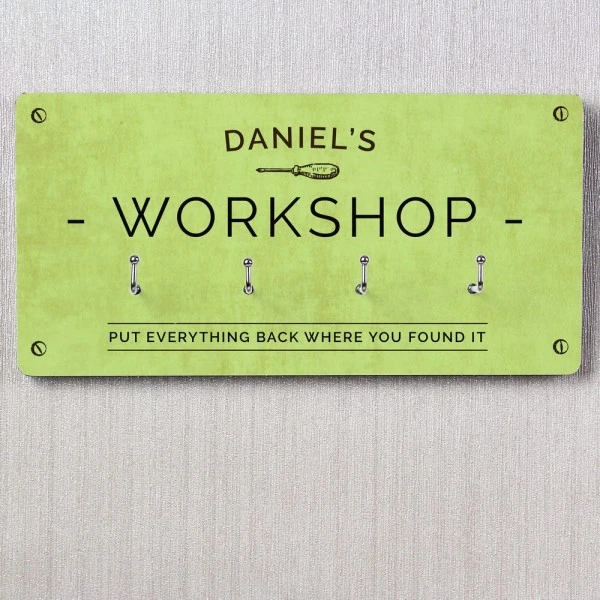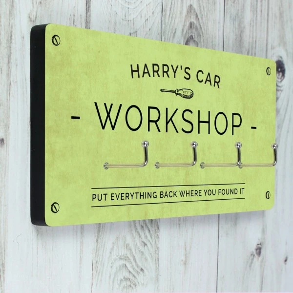 The wall hooks can be personalised with a line of text at the top, e.g. “Harry’s Car” up to 15 characters.