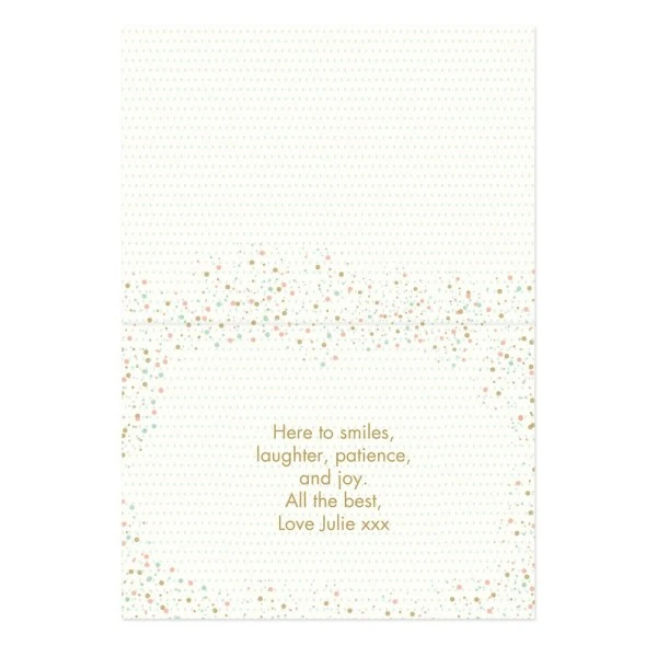 The card can be personalised with a name on the front up to 12 characters. The inside of the card can also be personalised with a message over 5 lines, with up to 25 characters per line.