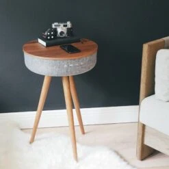 Tabblue Personalised Bluetooth Side Table With Surround Sound – Light Wood – Whiskey Sticker